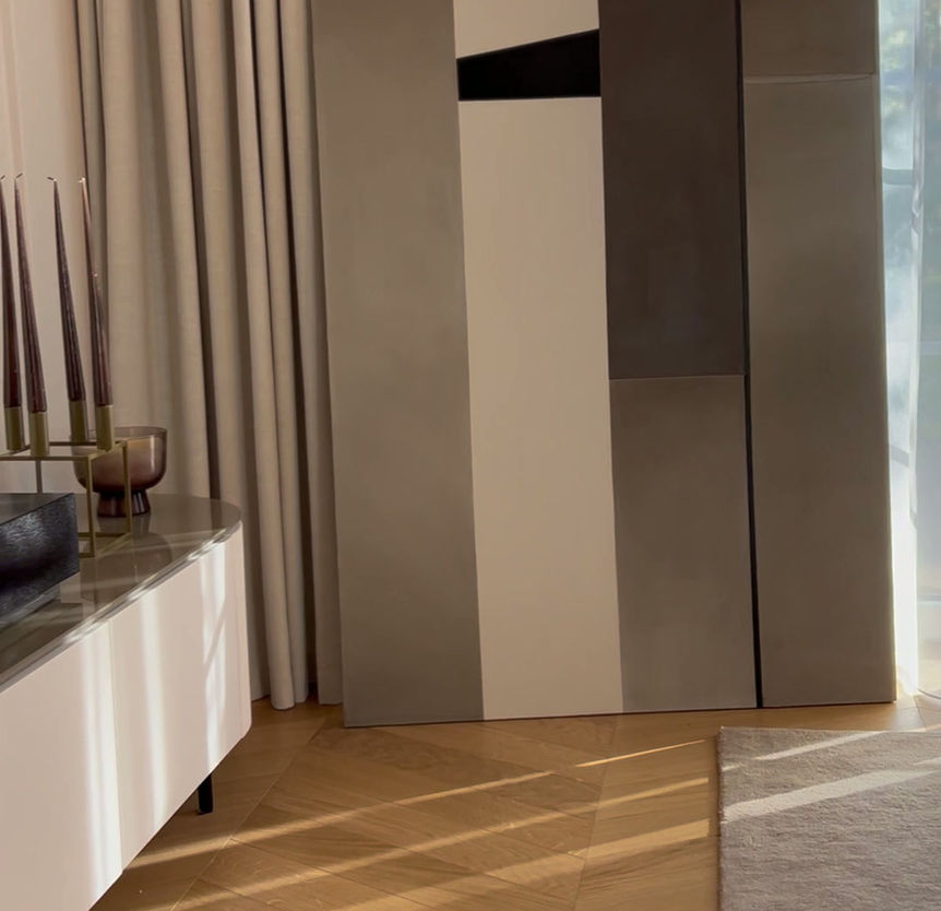 Z potrzeby stworzenia bardziej wyrazistych prac, zastosowania większej ilości kolorów, ich łączenia przenikania się, powstał cykl Balancing. Prace z tego cyklu odzwierciedlają moje zamiłowanie do naturalnej palety kolorystycznej. Dają też możliwość pracy koncepcyjnej, gdyż pierwszy etap powstawania prac z tego cyklu to projekt w postaci rysunku w formie elektronicznej. Kompozycje prac z cyklu Balancing, łączą w sobie organiczne i bardziej graficzne formy, które dają poczucie równowagi. Figury łączą się, współgrają, łagodzą i wzmacniają jednocześnie. Jest tu także widoczne zamiłowanie do struktur. Przejawia się w żłobieniach, akcentach wykonanych masą pumeksową, czy masą strukturalną. Tytułowe „balansowanie” odnosi się do wielu aspektów: wrażenia, kompozycji, kolorystyki, a także mojej pracy twórczej, która balasuje na pograniczu różnych technik.